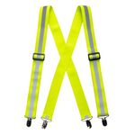 Adjustable elasticated braces with four clip attachment points for secure fitting to any trousers. Using high visibility colour and reflective print for excellent visibility.