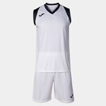 Set consisting of T-shirt and shorts suitable for basketball.The T-shirt is made of lightweight fabric sleeveless and has a V-neck to facilitate freedom of movement.The shorts include an adjustable elastic waistband with waist string.